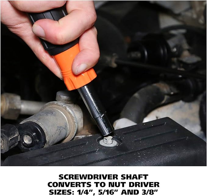 - Doubles As A Nut Driver: Multi screwdriver’s shaft converts to nut driver sizes: 1/4", 5/16" and 3/8"