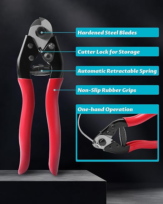 - STEEL WIRE CUTTER: Smart cable cutter with hardened steel blades, coated handle and safe lock, cut stainless steel cables accurately and cleanly
