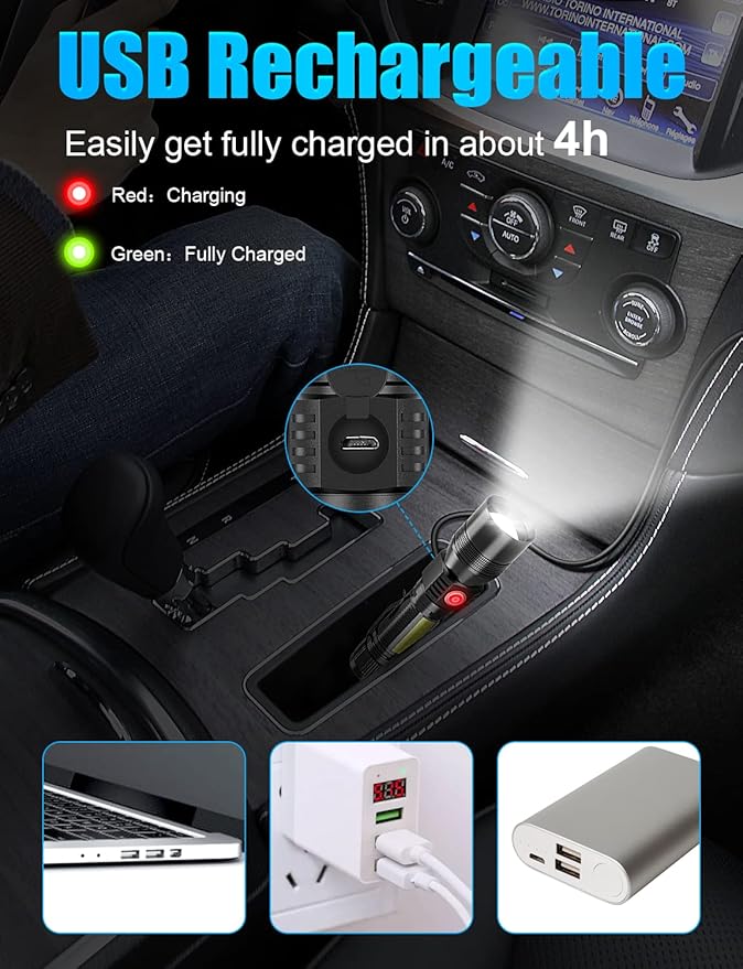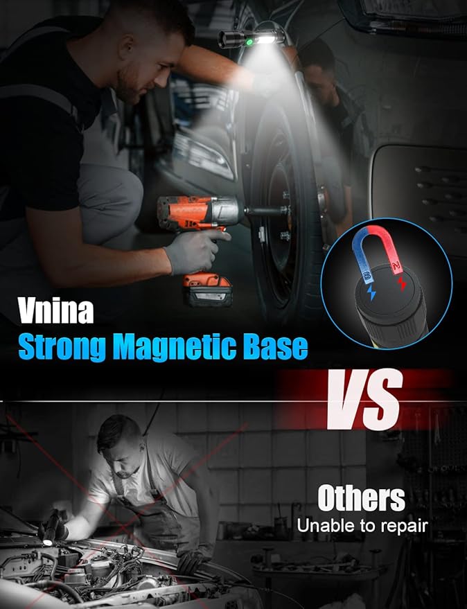 - ๐ฆ[Strong Magnet & COB Sidelight]: If you're struggling with repairing at night with a flashlight in one hand, Our magnet flashlights fit you more! Build with magnet can be attached to the surface of iron material to free your hands. Also, the COB side light has almost 180ยฐ wide beam and bright enough for repairing or working, pairing with the magnet is the perfect combination.