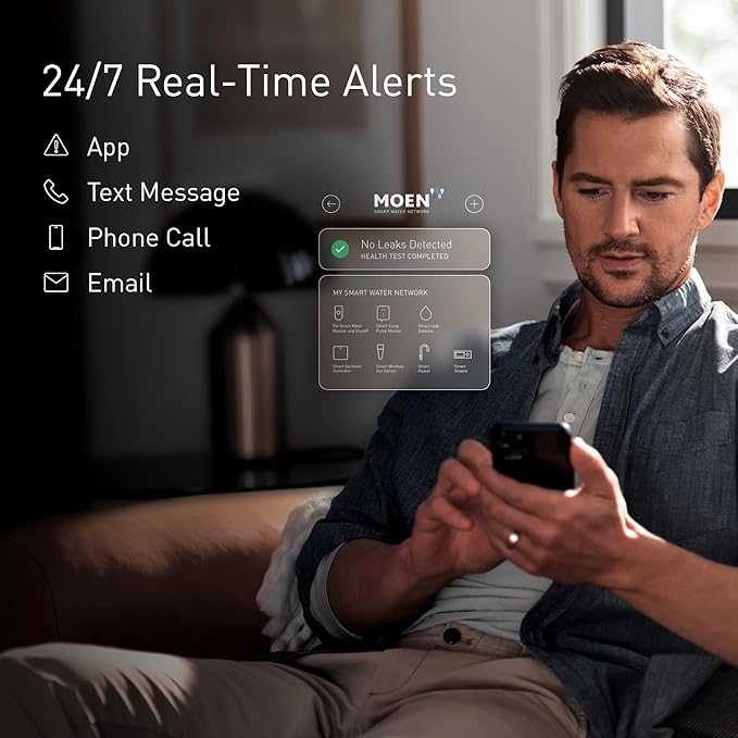 - BUNDLE INCLUDES: (1 count) Flo by Moen 1-1/4-Inch Smart Water Shutoff; (3 count) Flo by Moen Smart Water Detector