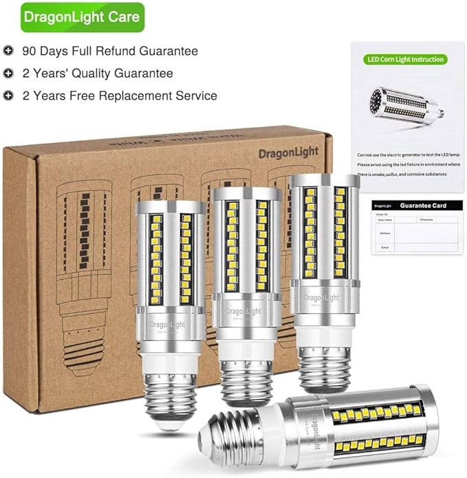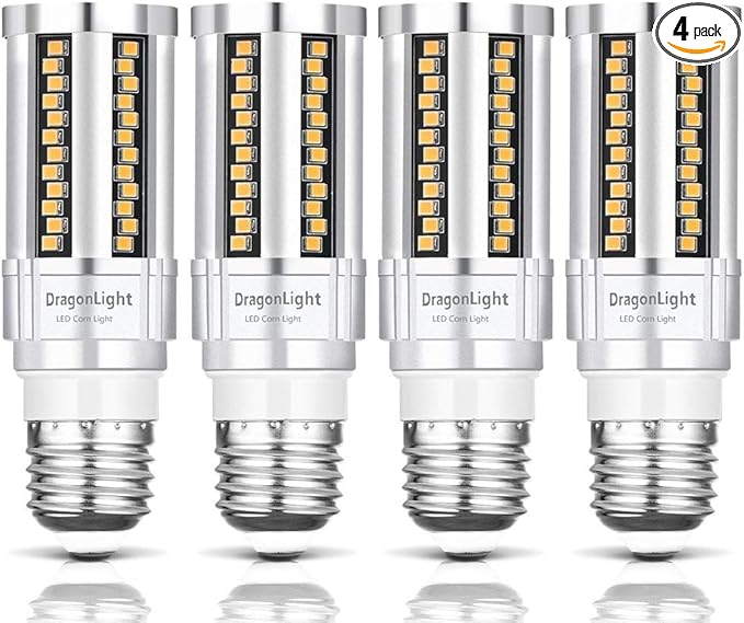 DragonLight 15W Super Bright Corn LED Light Bulbs Fanless(150 Watt Equivalent) - 3000K Warm White 1,800 Lumens E26 Base LED Lamp for Residential and Commercial Lighting, Pack of 4