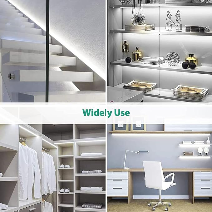 - 【Widely Use】- The 16.4 Ft/5m 6000K Dimmable Light Strip is Suitable for kitchen cabinet lighting, vanity lights, TV backlights, hallway, living room, staircase, bar, shop windows, bookcase, display cabinets, pantry, workbench light-up a beer sign and almost anywhere