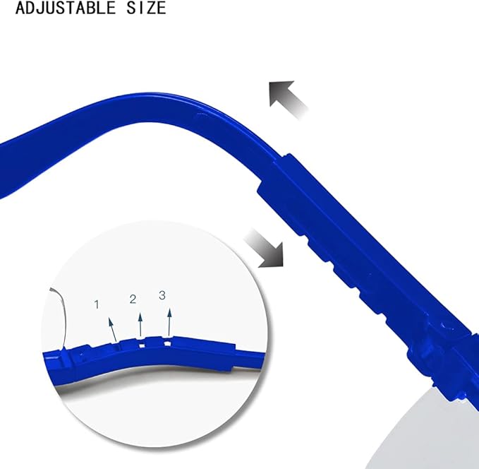 - 【ADJUSTABLE】Total length of the protective goggles is 4.5 in, the temple can be adjusted to different lengths (3.5 - 4.5 in) according to the face shape and light weight keeps them comfortable to wear for hours at a time.