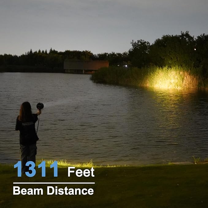 - HIGH PENETRABILITY SPOTLIGHT. GOODSMANN Handheld spotlight! Embrace the brilliance of 1200 lumens, casting a radiant glow up to 437 yards away, experience unparalleled penetrability, allowing light to effortlessly cut through dense fog and illuminate the farthest corners of your environment.