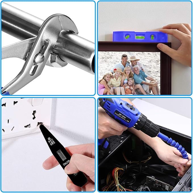 - 【MULTI-FUNCTIONAL TOOL KIT】This professional home power tool drill set contains the most useful advanced tools for designing, repairing or maintaining. Whether it is decoration, Furniture assembly, drilling, cutting, garden, office or daily home repairs maintenance. Tools are neatly stored in a sturdy case that keeps them secure, clean, organised and easy to find. This compact tool kit has you covered with the right tools.