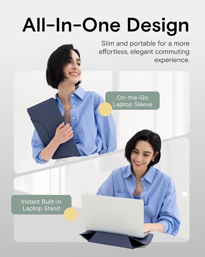 - Two Angles Laptop Sleeve Stand: Instantly convert this sleek Laptop Sleeve into a sturdy Laptop Stand. Features dual-angle adjustment (15° for typing; 25° for viewing) to elevate your screen, reducing neck/wrist strain from poor posture. More than a protective Laptop Bag, this ergonomic Computer Bag works anywhere – transforming your carry sleeve into a pain-relieving workstation.