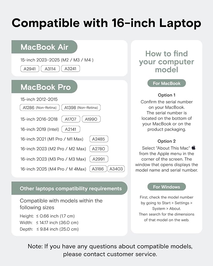 - Compatibility: Designed for 16 inch laptops. Laptop sleeve dimensions: 15.8 x 10.5 inch, Maximum compatible size: 14 x 9.8 x 0.7 inch. Laptop sleeve Precisely fits MacBook Air 15-in.(M2/M3/M4, 2023-2025), MacBook Pro 16-in.(M4 Pro/M4 Max, 2025), MacBook Pro 16-in.(M3 Pro/M3 Max, 2023), MacBook Pro 16-in.(M2 Pro/M2 Max, 2023), MacBook Pro 16-in.(M1 Pro/M1 Max, 2021), MacBook Pro 16-in.(intel, 2019), MacBook Pro 15-in (2016-2018), MacBook Pro 15-in (2012-2015)