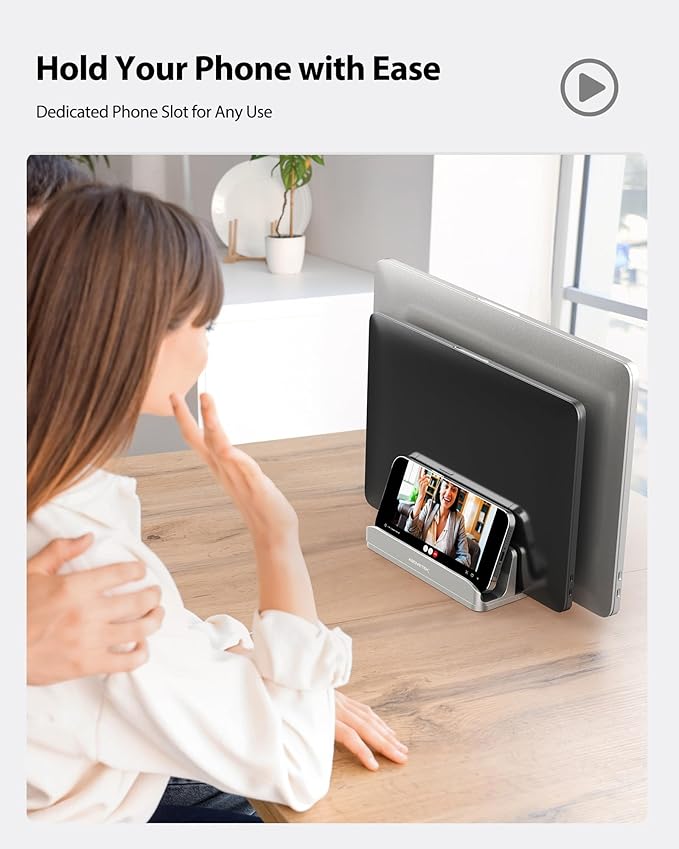 - Space-Saving: This dual laptop stand allows you to store your devices vertically, freeing up valuable desk space. It's a perfect desktop laptop stand for creating a clutter-free workspace, thus boosting productivity.