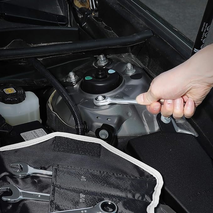 - This comprehensive collection of open-ended and ratchet wrenches is a must-have for your roadside emergency kit. They roll up neatly in an organizer bag for storage in your car trunk or mechanic's gear