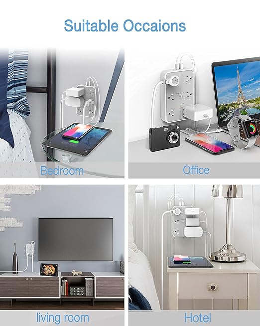 - Surger Protection and Power Switch: This power outlet can protect your electronics from sudden power surges with built in 1080 joules; The power switch controls AC outlet and USB ports, please ensure that the switch is working before use; It will trip off automatically to protect your devices when the power overload