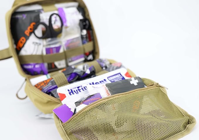Lightning X Rip-Away Officer's Patrol Tactical Gunshot & Trauma IFAK Kit w/Headrest Mount - Desert TAN