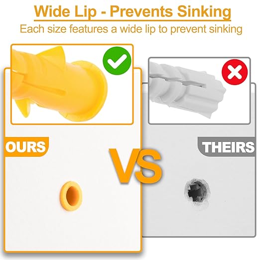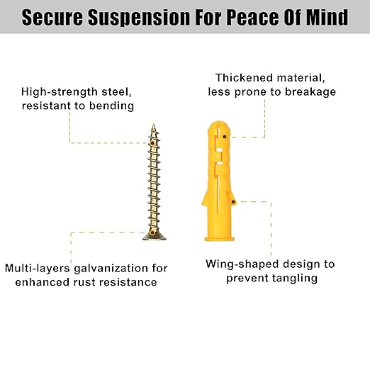 - PREMIUM MATERIALS FOR SUPERIOR DURABILITY: Our plastic wall anchors are crafted from a high-performance nylon and PE compound, providing enhanced strength, wear resistance, and long-lasting reliability. The ribbed design ensures a tight grip inside the wall, preventing slipping or loosening over time. The galvanized Phillips screws made of high-carbon steel offer outstanding hardness and resistance to rust and corrosion, making them ideal for both indoor and outdoor applications.