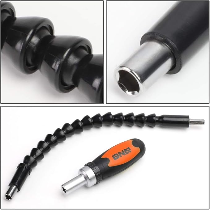 - INCLUDES: [30pc] Philips, Hex, & Torx Bits; 3/8’’ Extension; 1/4’’ 3/8’’ Adapter; Flexible Drill Bit Extension; 7 3/8" Metric Sockets; [20] 1/4" Metric Sockets | Color: Orange/Black