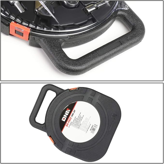 DNA MOTORING 64pcs Mechanic's Auto & Home Repair Tool Box, Screwdriver Bit Tool Set, SAE and Metric Socket Wrench Set, Orange/Black, TOOLS-00026