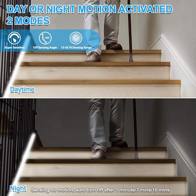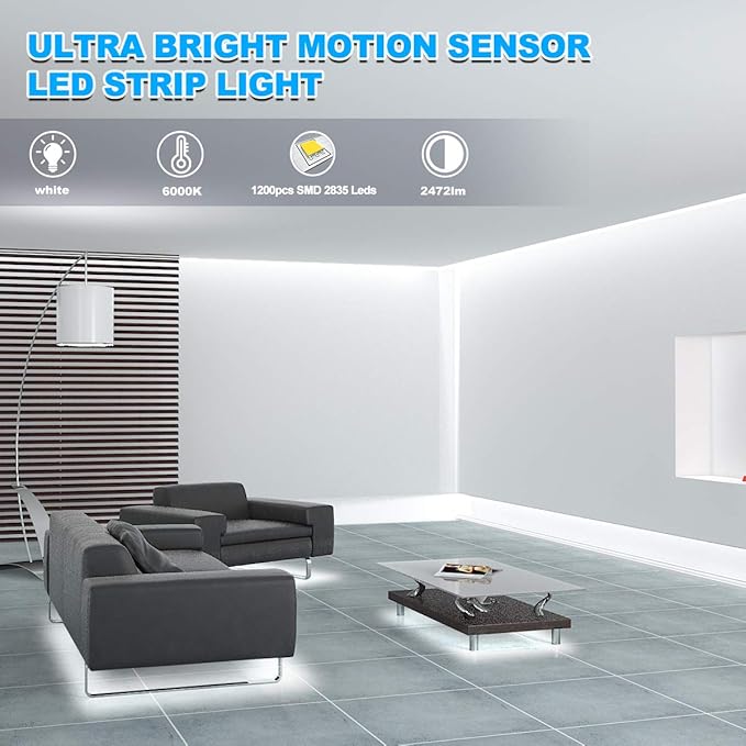 - Upgraded Motion Activated Led Strip Light: The led rope lights length extends to 65.6ft. And its motion activated box design is in line with ergonomics better to be used more comfortable, and its sensing range will extend to 19.68ft to be more sensitive