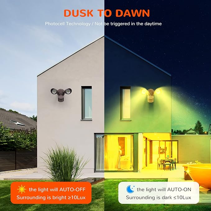 JJC LED Security Lights Motion Sensor Flood Light Outdoor Fixture,27.5W(120W Equiv.) 3000LM,IP65 Waterproof,3000K Warm White ETL Listed Outdoor Lighting Brown (Not Solar Powered)