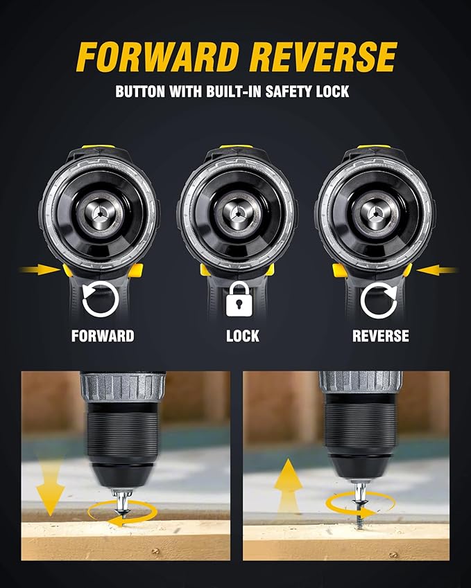 - ⚡【1/2" Metal Chuck & 2-Speed Control】RIDA's cordless drill features a 1/2" (2-13mm) keyless metal chuck with spindle lock for one-handed bit changes. With 2-in-1 functionality (0-400 RPM for screwdriving / 0-1500 RPM for drilling) and 25+1 torque settings, it's the ultimate all-rounder for pros and DIYers tackling construction, repairs, and daily tasks.
