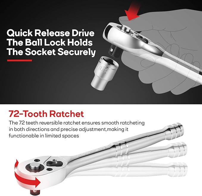 - Complete Varieties: 248Pcs Tool Kit Contains Mixed Sizes Of Sae And Metric Combination Wrenches, A Complete Range Of 1/4, 3/8", 1/2" Metric And Sae Sized Sockets And 1/2" & 3/8" Driver Ratchets, Adjustable Wrench, Pump Plier, Long Nose Plier Etc. Variety Of 1/4-Inch Screwdriver Bits: Phillips, Slotted, Square, Star And Pozi