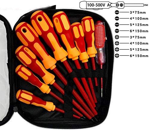 - 【Box Includes】. Full size of 4 Slotted Insulated screwdriver - 3 x 75mm, 4.0 x 100mm, 5x125mm, 6x 150mm; 3 Phillips Insulated screwdriver - PH0 3 x 75mm, PH1 4x100mm, PH2 5.0x125mm; PH2 6.0x150mmVoltage Tester(100v-500v testing range)