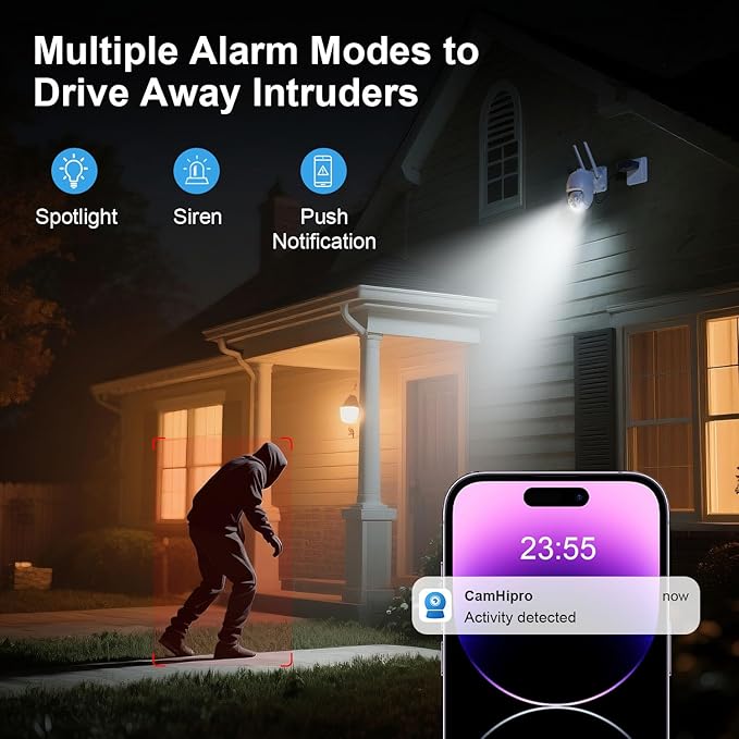 - Dual-Band WiFi for Reliable Coverage: This wireless security camera outdoor supports 2.4GHz & 5GHz WiFi for a stable connection, ideal for both indoor and outdoor security at your home or business.