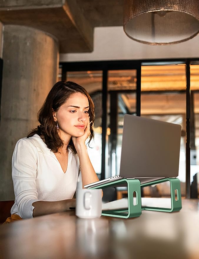 SOUNDANCE Laptop Stand, Aluminum Computer Riser, Ergonomic Laptops Elevator for Desk, Metal Holder Compatible with 10 to 15.6 Inches Notebook Computer, Green