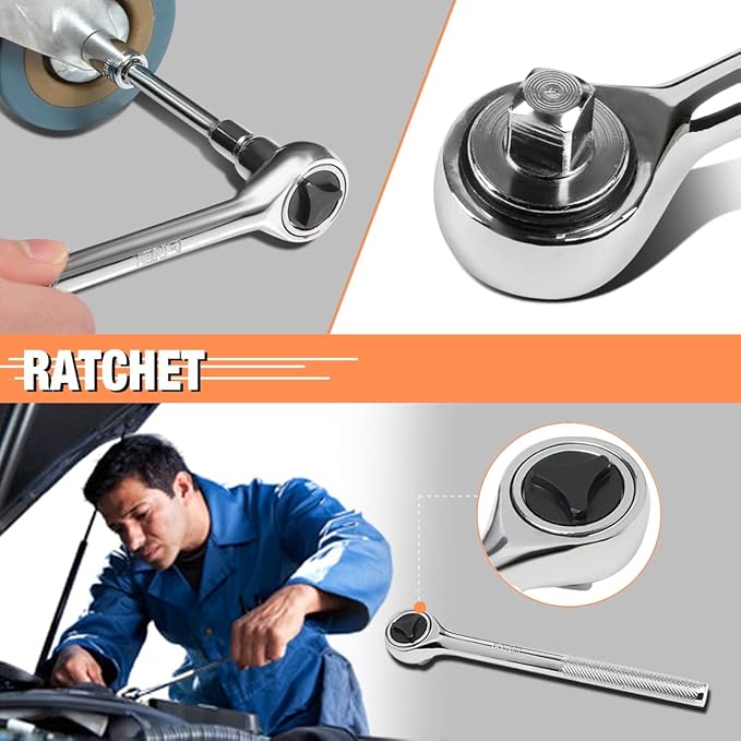- 【Comfortable and High Quality】Our Ratchet, Wrench, and Sockets are made of high-quality chrome-vanadium steel, rubberized slip-resistant handle for comfortable use.