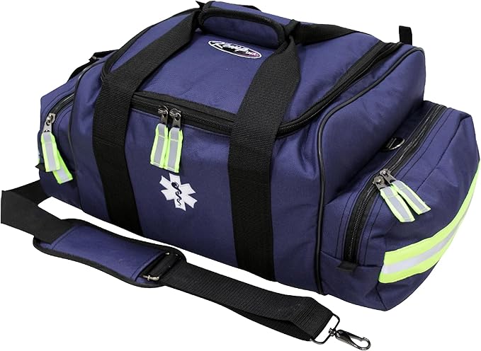 Kemp USA Maxi Trauma Bag - Large First Aid Kit for EMT First Responders - Water Resistant 600D Nylon - Buckle Closure with Adjustable Strap & Reflective Trim - Navy Blue