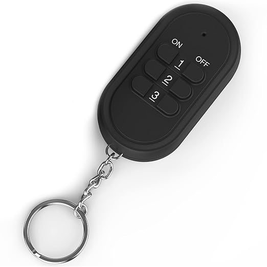 - [REMOTE CONTROL FROM ANY CORNER IN YOUR HOUSE] The remote control sends a strong signal that will reach 100ft/30m away and pass through barriers like furniture, doors, and walls. Even if the wireless outlets are in a hard-to-reach area or a remote location in the yard, the control is always just one simple click from the comfort of your couch. The remote is compact and fits in a pocket or purse, or on your key chain.