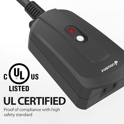Fosmon Outdoor Wireless Remote Control Outlet, Heavy Duty Waterproof Electrical Plug-in Light Switch, 3-Prong, 100ft Range, Grounded, 3 Receivers, 1 Remote - UL Listed
