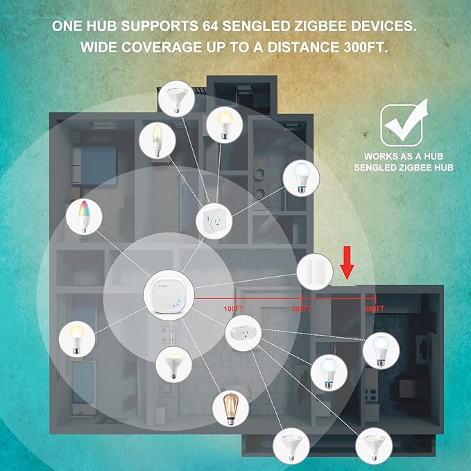 - 【Zigbee Hub Required】Pair Sengled Zigbee smart light bulbs to a compatible smart hub, like Sengled Smart Hub(sold separately: B0828KXVGQ), SmartThings Hub, Wink and Habitat. Also compatible with built-in smart hub devices such as Amazon Echo Plus, Echo 4th Gen, Echo Show 10. You can use Apple Homekit & Siri if you have Sengled Hub(4th Gen).