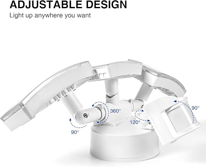 - 【ADJUSTABLE HEAD DESIGN】: Outdoor security lights motion outdoor have 3 separate rotating light heads. You can turn the motion sensor light head in different directions for wider coverage as needed. The sensor also supports 360-degree rotation, and you can customize the sensing area.
