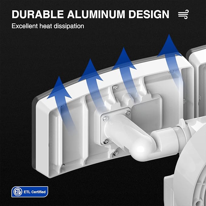 - 【ADVANCED MOTION CHIPS & ALUMINUM DESIGN】: Saatly flood lights outdoor is equipped with the second generation motion sensor chip, large sensing angle of 180 ° and 70ft sensing distance, can accurately detect people, cars, pets, reducing the times of false sensing. Full-aluminum body makes the light has unparalleled advantages in heat dissipation, the lifespan is up to 50,000 hours, more security than the lights with ABS body. High quality floodlight with ETL certification.