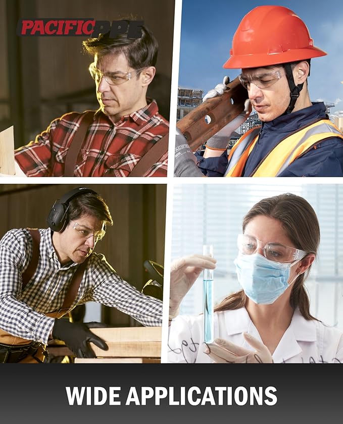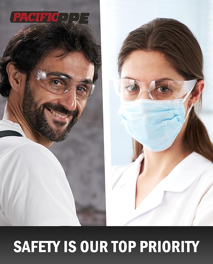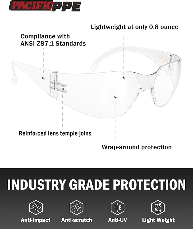 PACIFIC PPE 18 Pack Safety Glasses for Men and Women, ANSI Z87 Protective Eyewear with Scratch Resistant Clear Wraparound Lenses, Adjustable Goggles for Lab, Work and Shooting