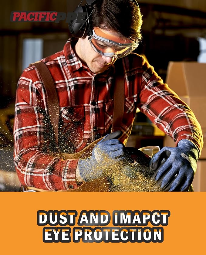 PACIFIC PPE Wide-Vision Safety Glasses, ANSI Z87 Eyewear with Anti-Fog and Anti-Scratch Wraparound Lenses, Adjustable Strap, Ideal for Chemistry Lab, Woodworking, Industry