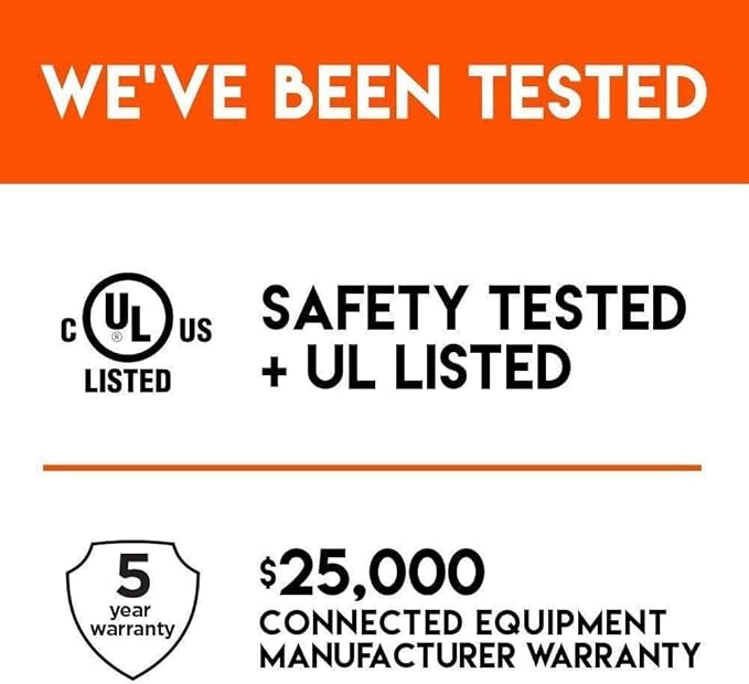 - UL safety certified with a 5 year, $25k connected equipment warranty. Your electronics won't be "hertz" with ECHOGEAR. That was a terrible electricity pun.