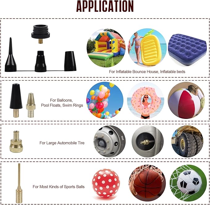 - Standard Blow Gun with Nozzles: All metal construction standard air blow gun with 1 nozzles and 2 inflation needles, all-purpose use for bicycles, air mattresses, balls, etc.