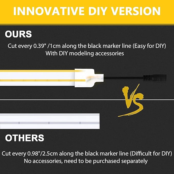 - 【 Easier Creation】Unlike other traditional neon strips, Lamomo neon strips can be cut every 0.39 inches/1 cm, and you can make any DIY neon signs and commercial signs. The flexible silicon housing can be bent at almost 180°, but rigid enough to hold the shape. Make every DIY Creation possible.