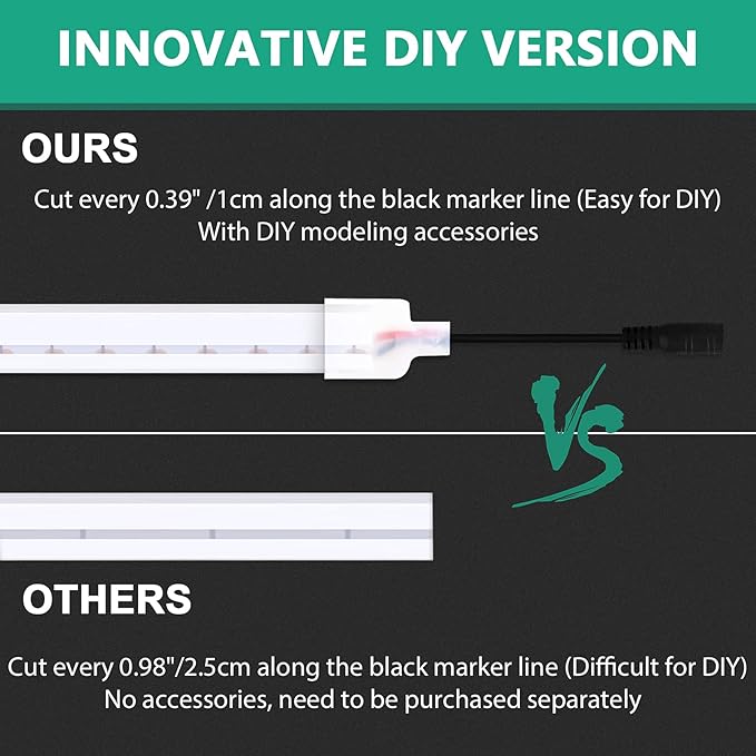 - 【 Easier Creation】Unlike other traditional neon strips, Lamomo neon strips can be cut every 0.39 inches/1 cm, and you can make any DIY neon signs and commercial signs. The flexible silicon housing can be bent at almost 180°, but rigid enough to hold the shape. Make every DIY Creation possible