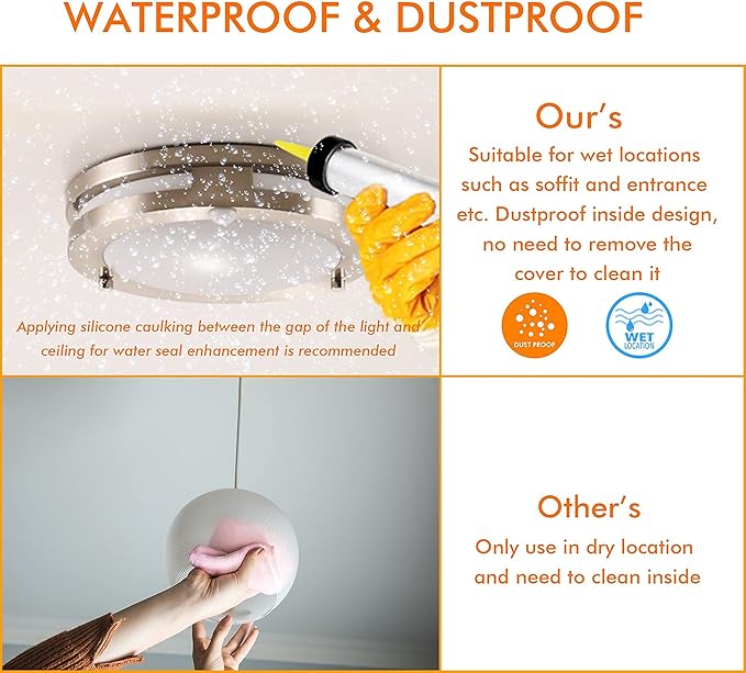 - 【Wide Application】This light can be used in pantry, hallway, laundry room, stair, attic or other small area no more than 3m*3m. It is also ideal patio or entrance etc wet location with it’s waterproof design(Need to apply silicone caulking for water seal enhancement)