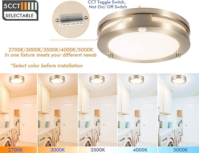 - 【5 Color Temperature Selectable】2700K/3000K/3500K/4000K/5000K in one fixture Outside switch design( For changing color temperature, not ON/OFF switch) easy to change color temperature for different seasons