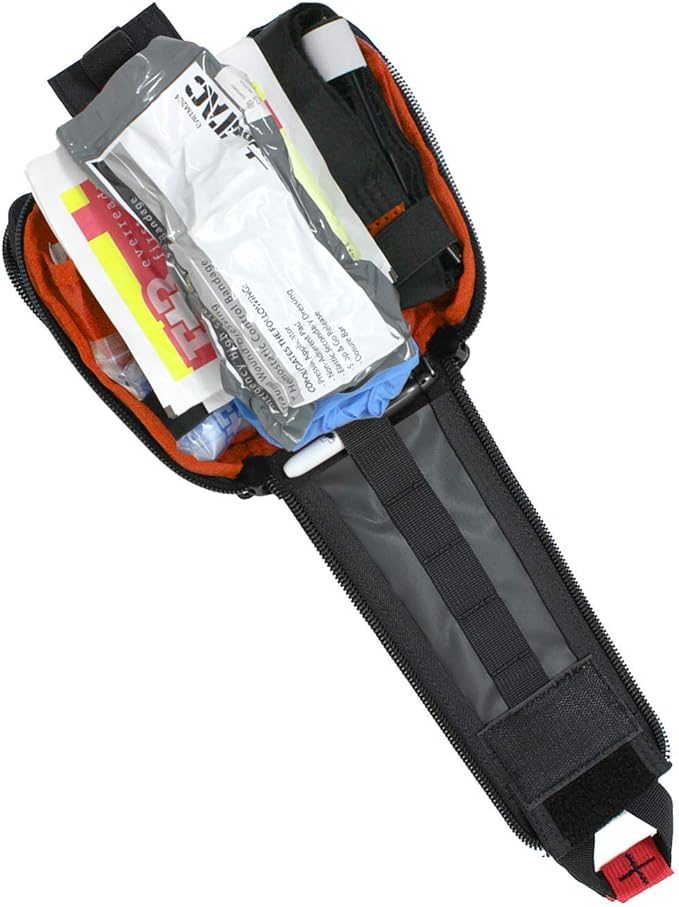 - TOOLS AND SUPPLIES- Kit also contains an Emergency mylar thermal blanket, Combine pad, Trauma shears, Emergency whistle, Face shield, Mini sharpie, SOF Tourniquet, Sterile gauze pads and Antiseptic wipes.
