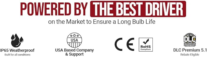 - DLC 5.1 PREMIUM CERTIFIED: Meets DLC 5.1 Premium standards for enhanced energy efficiency and quality, qualifying for utility rebates. UL Listed for safety and reliability—ideal for warehouses, retail, and outdoor fixtures