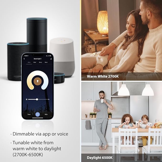 - WARM WHITE TO DAYLIGHT: the color temperature be changed from 2700K to 6500K, if divided on choice of soft white or cool white, this smart bulb addresses all your concerns.