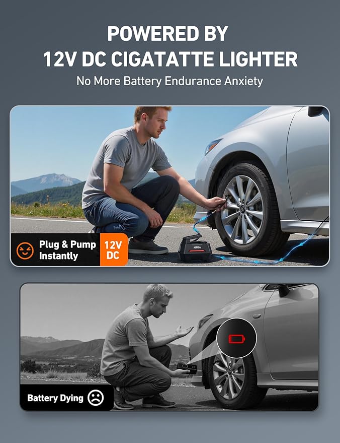 - EASY NIGHTTIME USE: Equipped with a backlit screen and a flashlight, this tire inflator brings convenient use, even in dim environments. Its independent LED Button enables one-press flashlight operation. Great gifts for men and women.