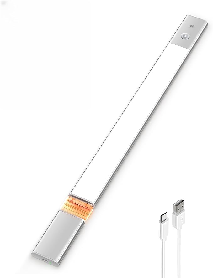 - Long-Lasting Battery Life: The 2200mAh rechargeable battery lasts 6H at max brightness or 7-22 days in auto motion sensor mode. It also has a detachable design that makes the recharge much more convenient. Replace batteries without removing the light — enjoy uninterrupted lighting for kitchens, closets, stairs, and all home spaces.(NOTE: Slide the side switch to ON to activate the light.)