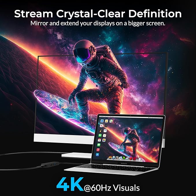 - 4K HDMI Output: Delivers up to 4K@60Hz via HDMI 2.0. Requires USB-C host with DisplayPort Alt Mode. Not compatible with all devices—check support before use.