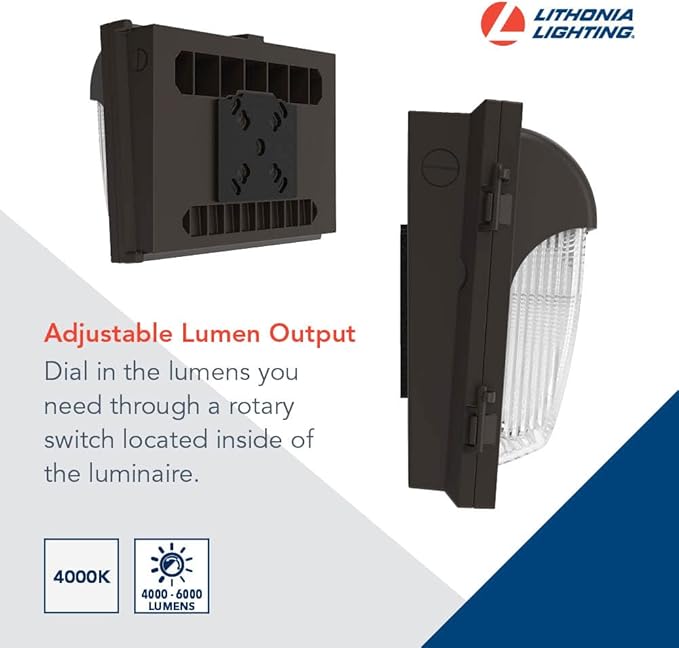 Lithonia Lighting 13" LED Wall Pack Outdoor Light Fixture, Building Wall Light, Adjustable Lumens, 4000K Cool White, MVOLT 120-277V, IP65, Glass Lens, Bronze (TWX2 LED ALO 40K MVOLT DDBTXD)