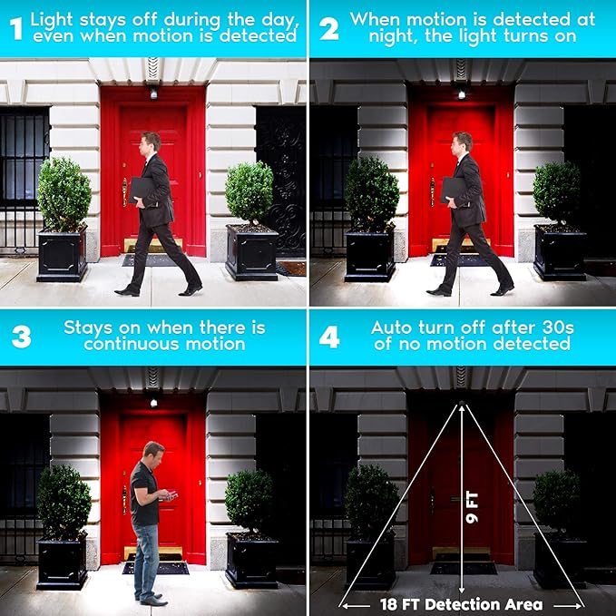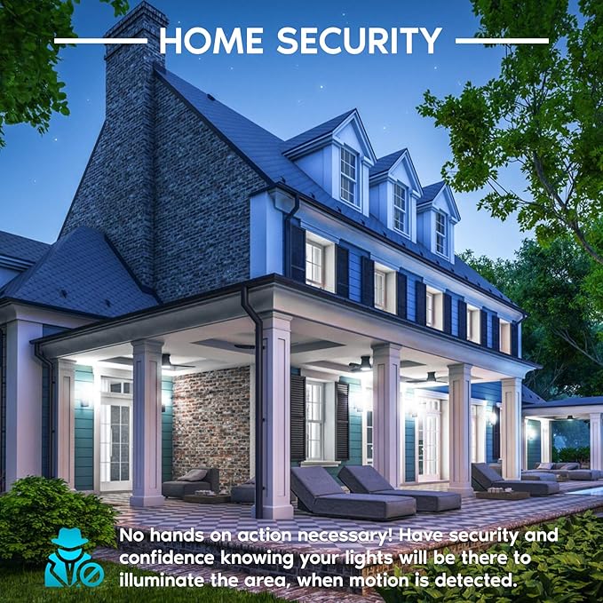 - Save Energy - The ideal way to conserve energy with these dusk till dawn outdoor light bulbs with automatic motion sensor that turn on only when someone is in range. Each LED bulb uses only 9W of power to replace standard 60W incandescent lights, which saves you 85% on your electricity and lasts 10x longer. These will remain off during the day and will only activate the motion sensor when it is dark. These will further conserve energy by turning off after 30s of no motion being detected.