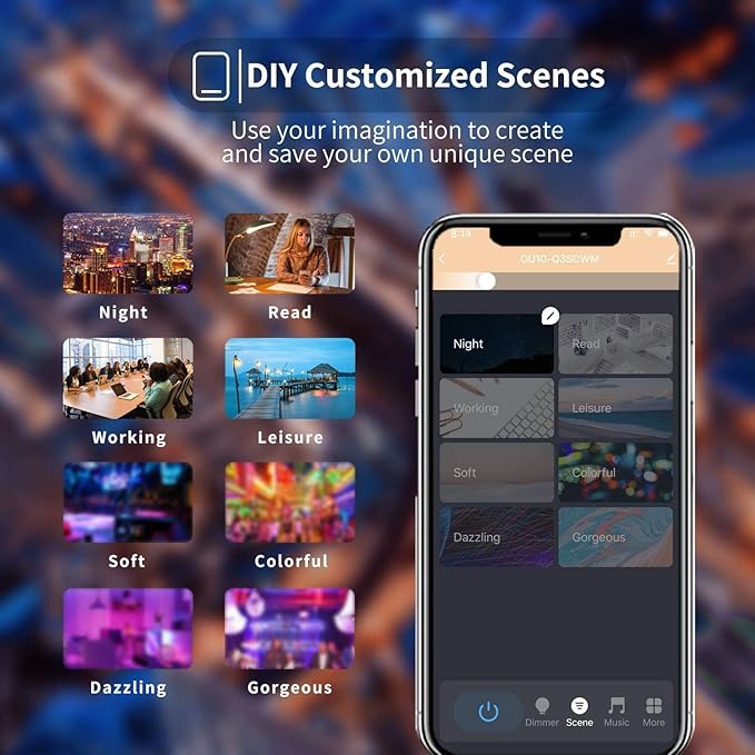 - 💡Customize Scenes Energy Saving Light Bulbs💡: Create your favorite light ambiance with 16 millions colors. The color changing ceiling fan smart light bulbs has various settings of color to adjust to the right occasion. Also E12 Smart light bulbs sync bias lighting to your favorite song and shows how neon changing with the rhythm. It provides 16 million colors, more scenes, make a stronger viewing experience.