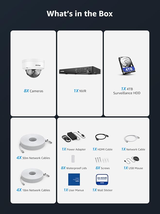 - 24/7 Recording & Remote Access: Comes with 4TB pre-installed hard drive disk, this 8 camera system records longer time for 24*7 recording. 2 SATA interfaces support up to 16TB HDD. Use ANNKE Vision App for easy remote access anytime anywhere